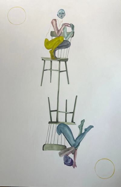 Do you know the expression “fake it till you make it”? I think imposter syndrome has followed me for most of my life — in my professional career and in my creative journey. Musical Chairs emerges from that space. The inverted repetition suggests reflection, duality, internal confrontation. Two versions of the same self: the one that maintains composure and the one that unravels. “Musical chairs” implies constant motion and the risk of being left without a place. For me, it represents that persistent feeling of competing for space, trying to occupy a seat without ever fully believing it belongs to you. This version has a more realistic, detailed style which was new.
